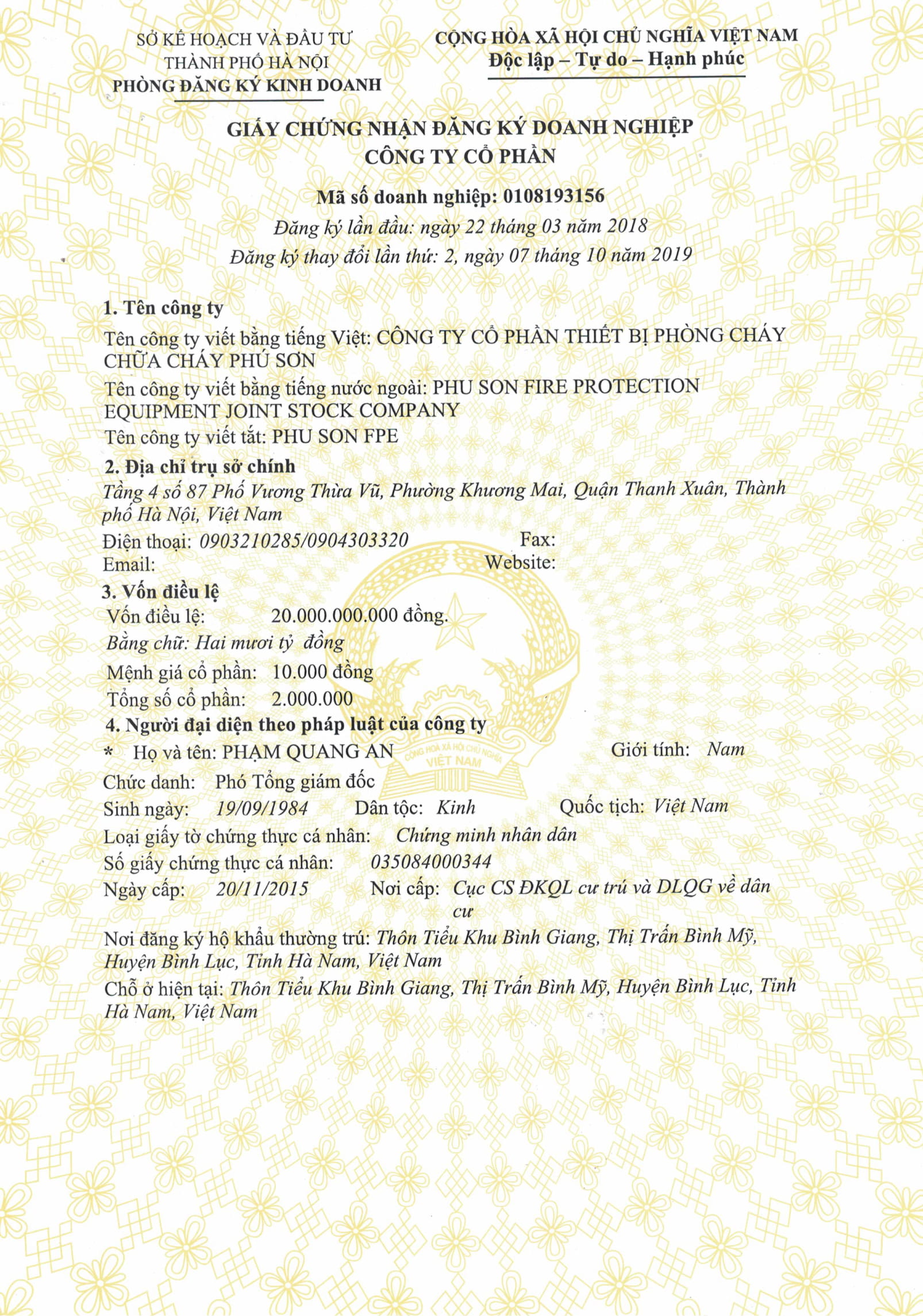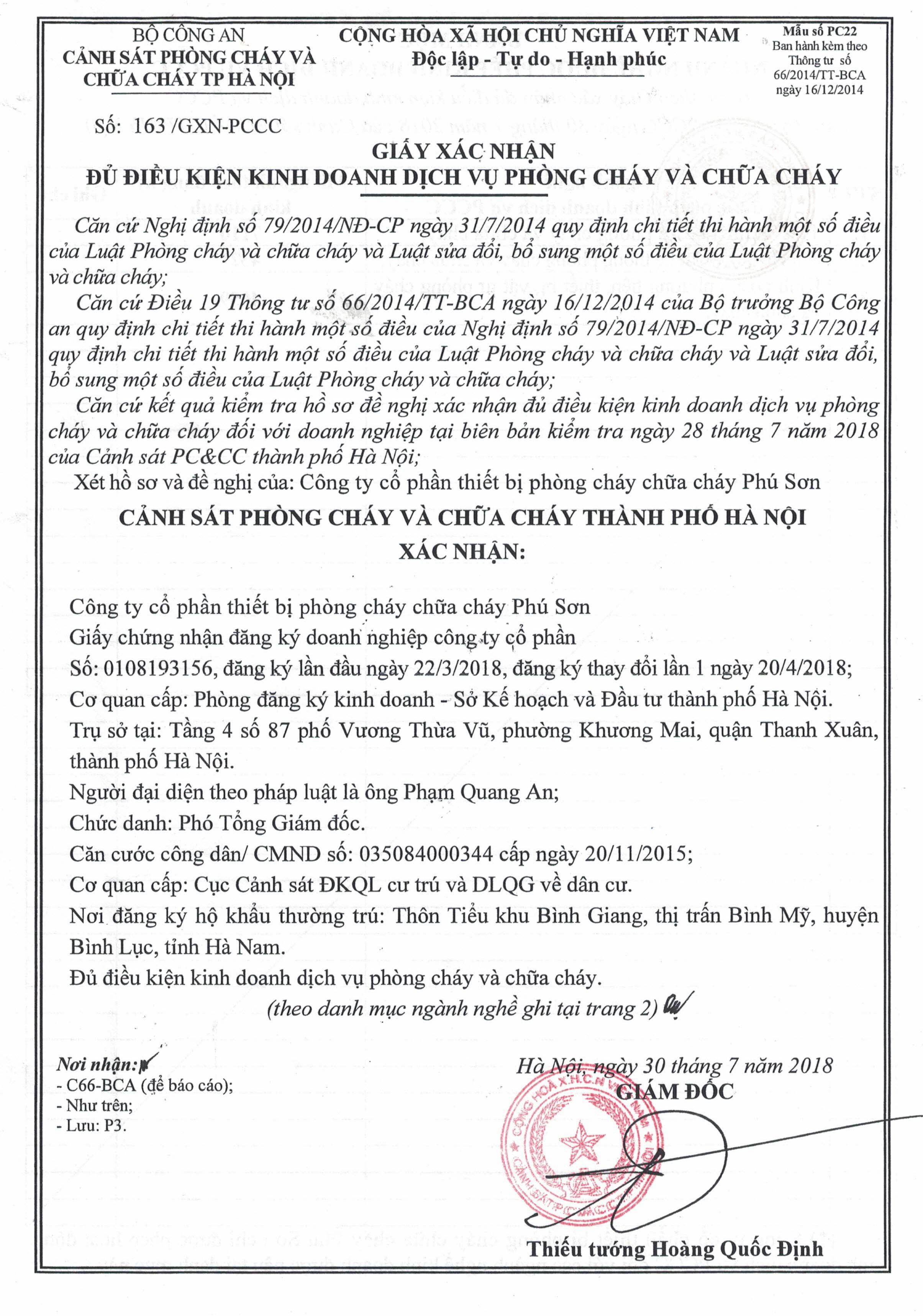 Công ty TNHH phòng cháy chữa cháy Vạn Xuân.